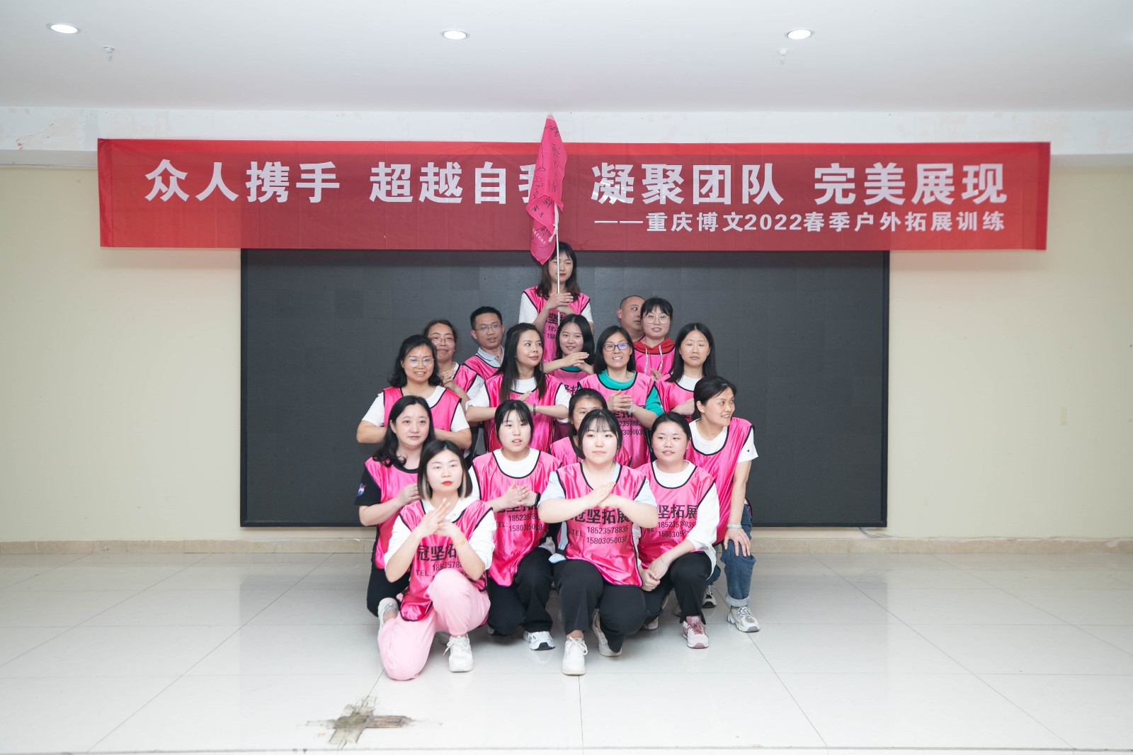 在之后的培训中,队长要带领全体队员共同完成由教练安排的各项课程,保证不落下每一位队员,通过小游戏带动团队之间的气氛,让每个人更好的融入到团队里面去,通过呐喊队名、口号将团队的热情激发出来,现场呐喊声、欢笑声不断....