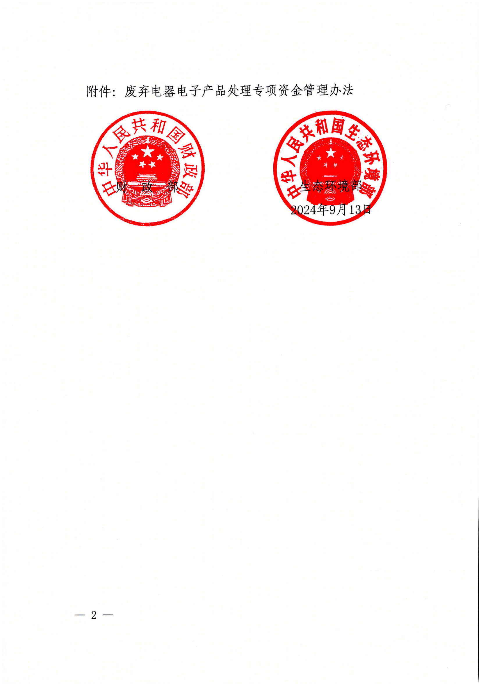 财政部生态环境部关于印发《废弃电器电子 产品处理专项资金管理办法》的通知