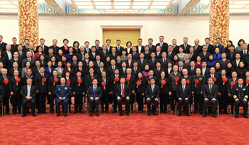 12月16日,党和国家领导人习近平、王沪宁、韩正等在北京人民大会堂会见全国离退休干部先进集体和先进个人代表。新华社记者 饶爱民 摄